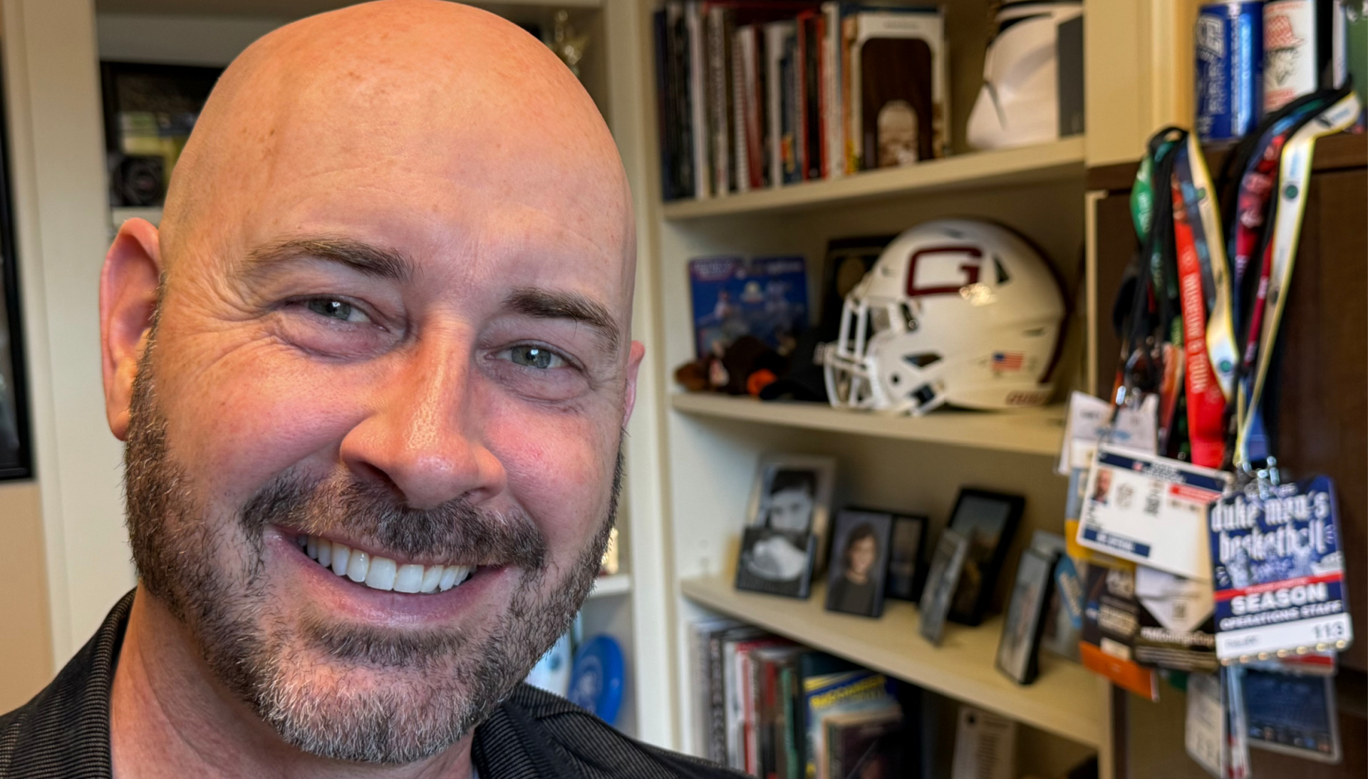 What followed was a career that zigged and zagged through nearly every corner of the sports ecosystem: journalism, athletic administration, communications, Division I athletics. He is courtside at Duke basketball games and sits in a booth high above Bank of America Stadium for Carolina Panthers games handling stats for both. Each position adds another layer of not only skills, but perspective. Seeing how decisions are made behind the curtain did not diminish his love of sports, it refined it.